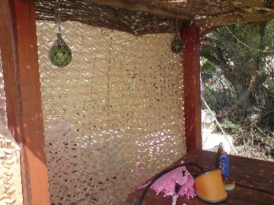 Filets U. S. Woodlands installés sur pergola détail filet.Filets 83309110 U. S. Woodland installés sur pergola détail filet.