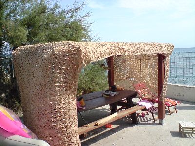 83309111 - Filet modèle désert, coloris sable pour séparation de la terrasse du voisin vue de gauche.
