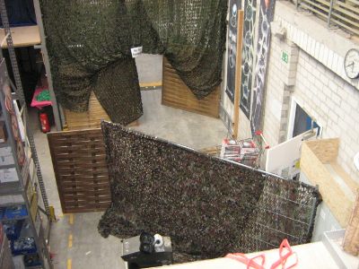 Filet rouge/noir camouflage paroiFilet de camouflage 8330911D devil, rouge/noir pour camoufler la paroi du bâtiment lors du Festimôme à Aubagne.
